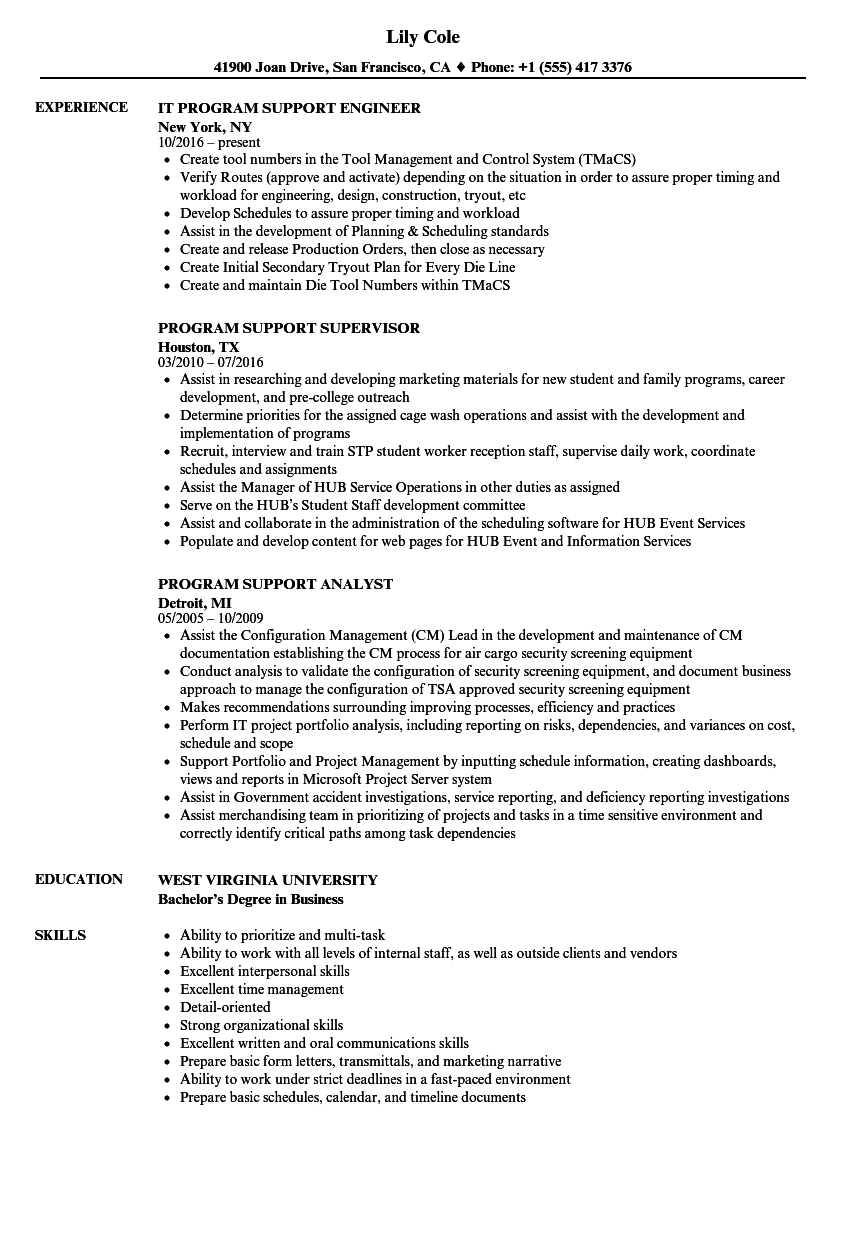 Guide the recruiter to the conclusion that you are the best candidate for the program support job. It’s actually very simple. Tailor your resume by picking relevant responsibilities from the examples below and then add your accomplishments. This way, you can position yourself in the best way to get hired.