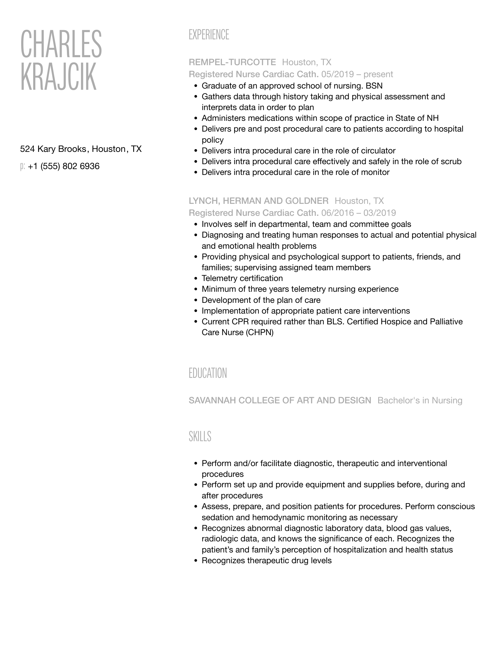Registered Nurse Cardiac Cath Lab PRN Resume Examples & Samples