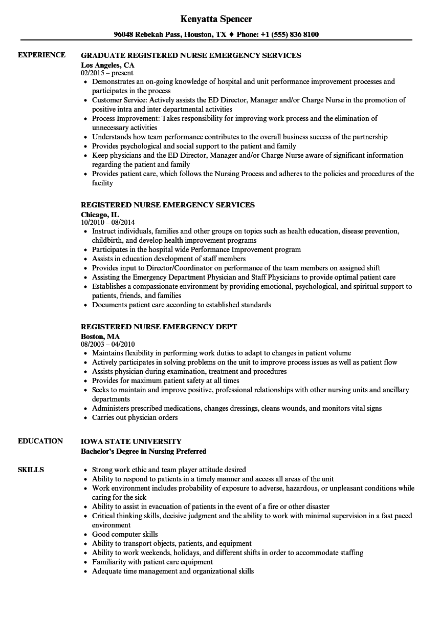 Graduate Registered Nurse Emergency Services Resume Examples & Samples