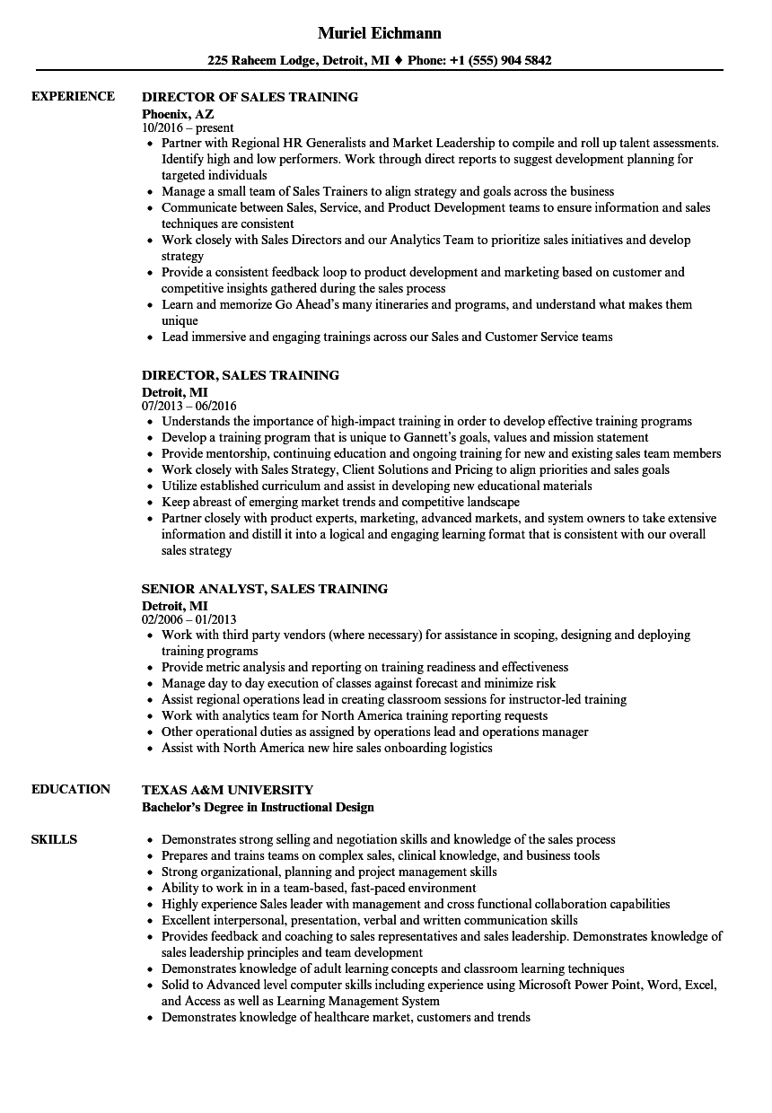 Director of Sales Training, Lsc & Lts Resume Examples & Samples