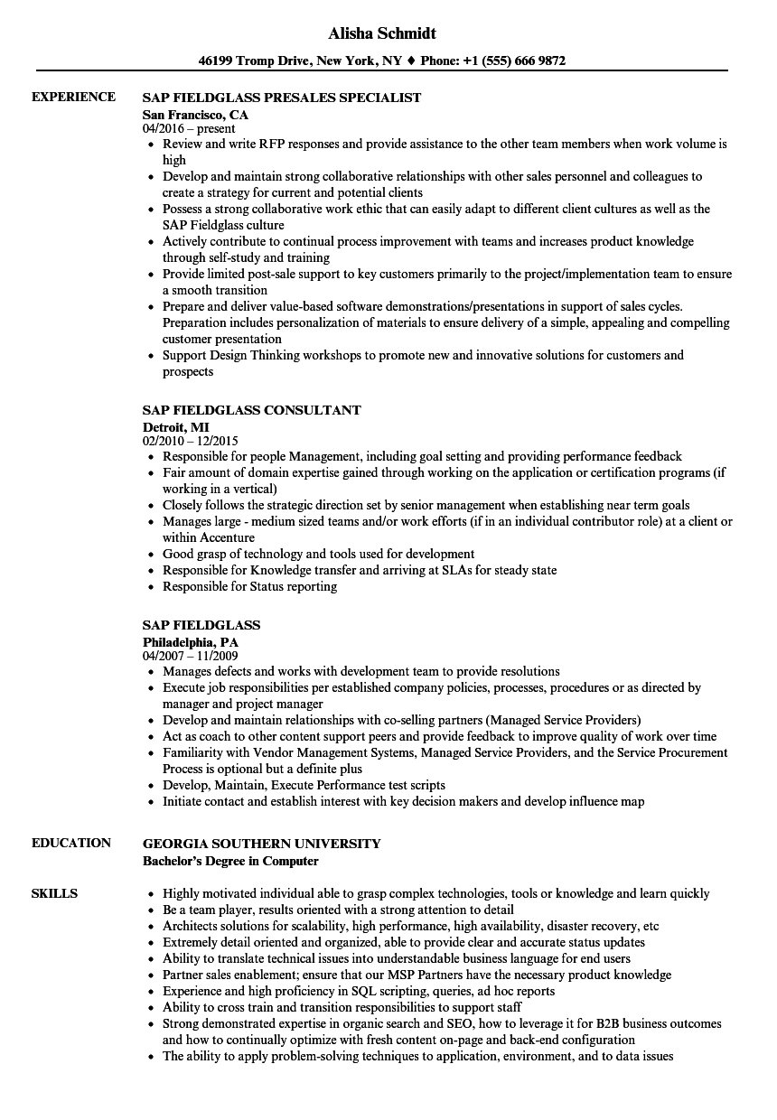 SAP Fieldglass Client Sales Executive Resume Examples & Samples