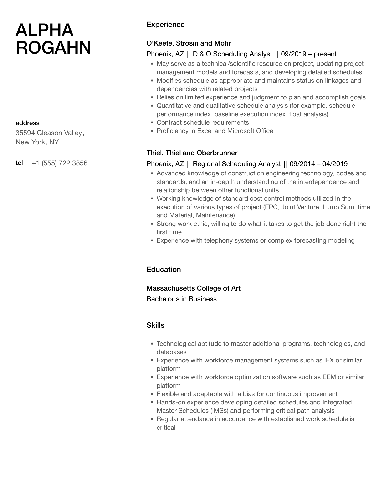 Scheduling Analyst, Mid Resume Examples & Samples
