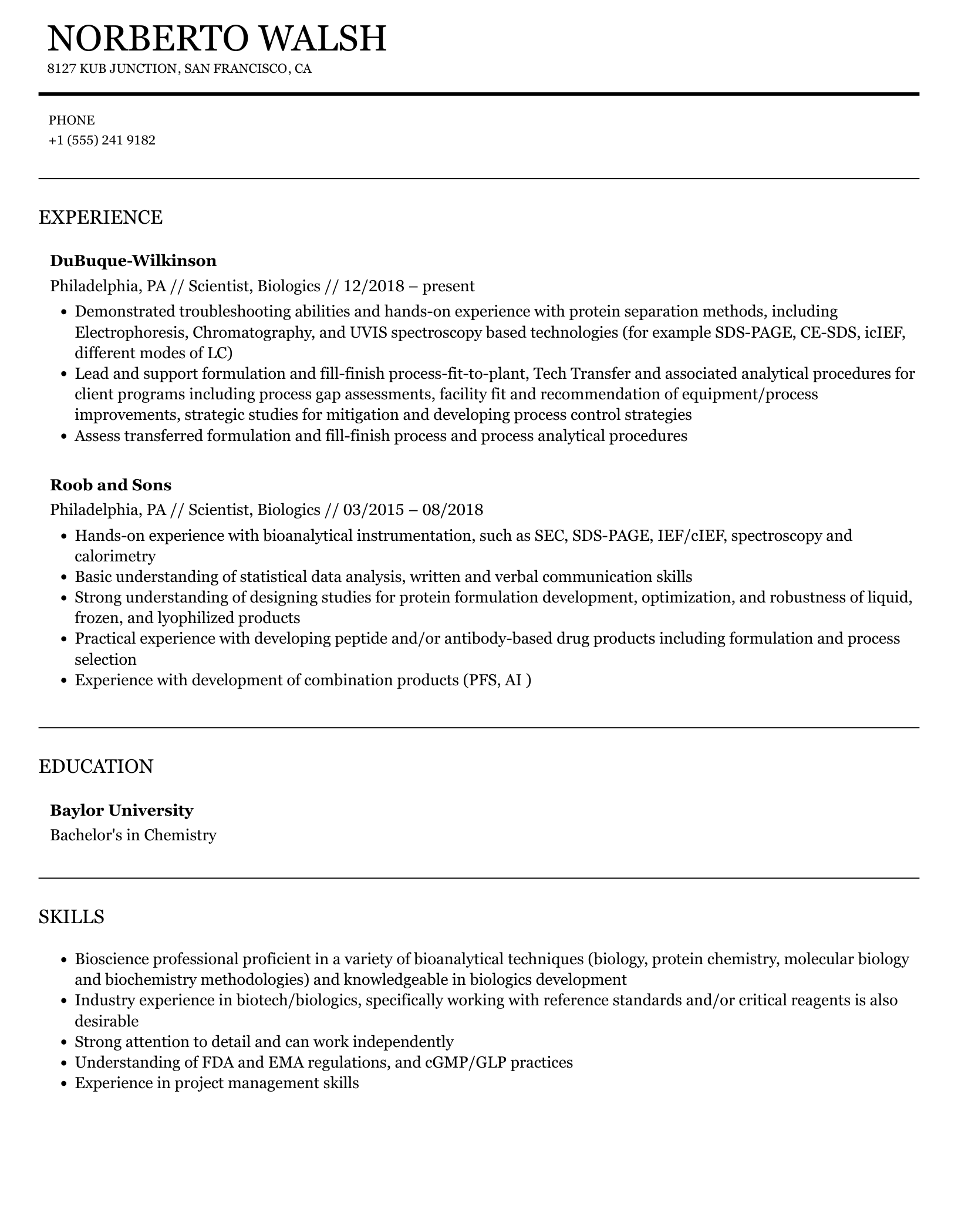Scientist, Biologics Analytical Development Resume Examples & Samples