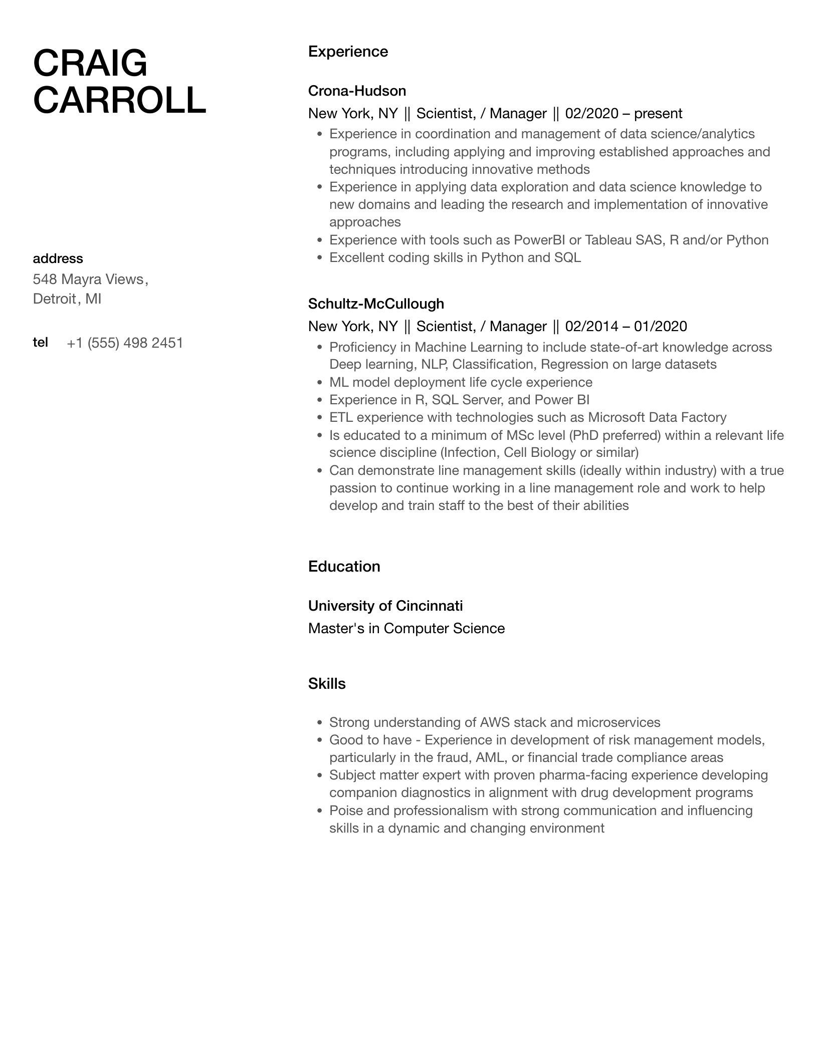 15 Scientist, / Manager resume templates
