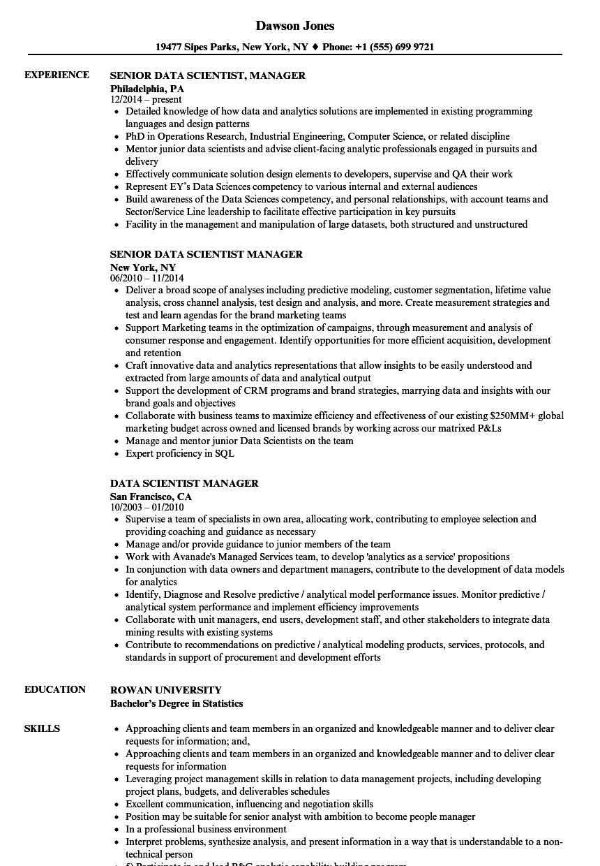 Senior Data Scientist Manager Resume Examples & Samples