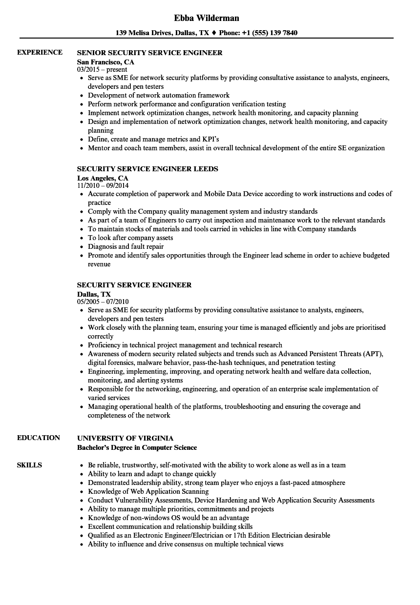 Security Service Engineer Resume Samples