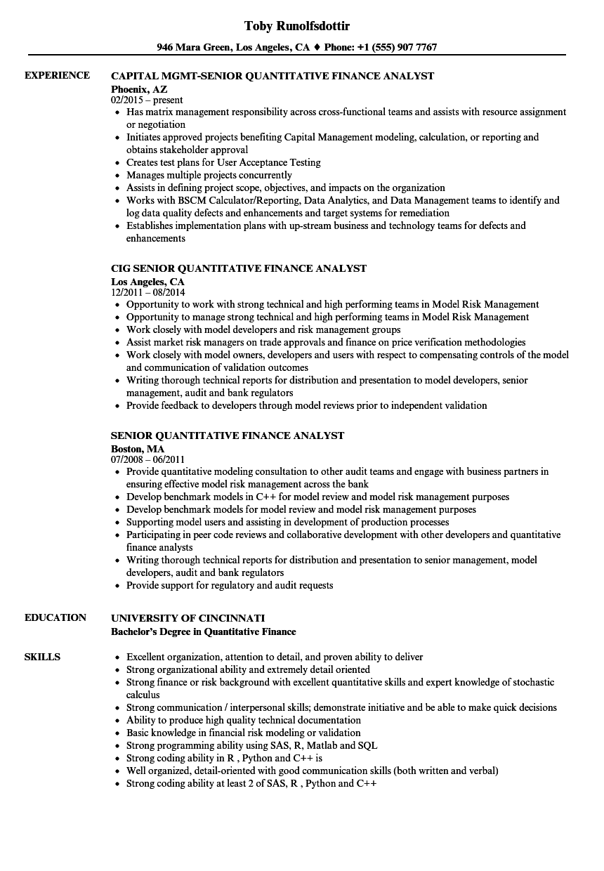 Senior Quantitative Finance Analyst Resume Examples & Samples