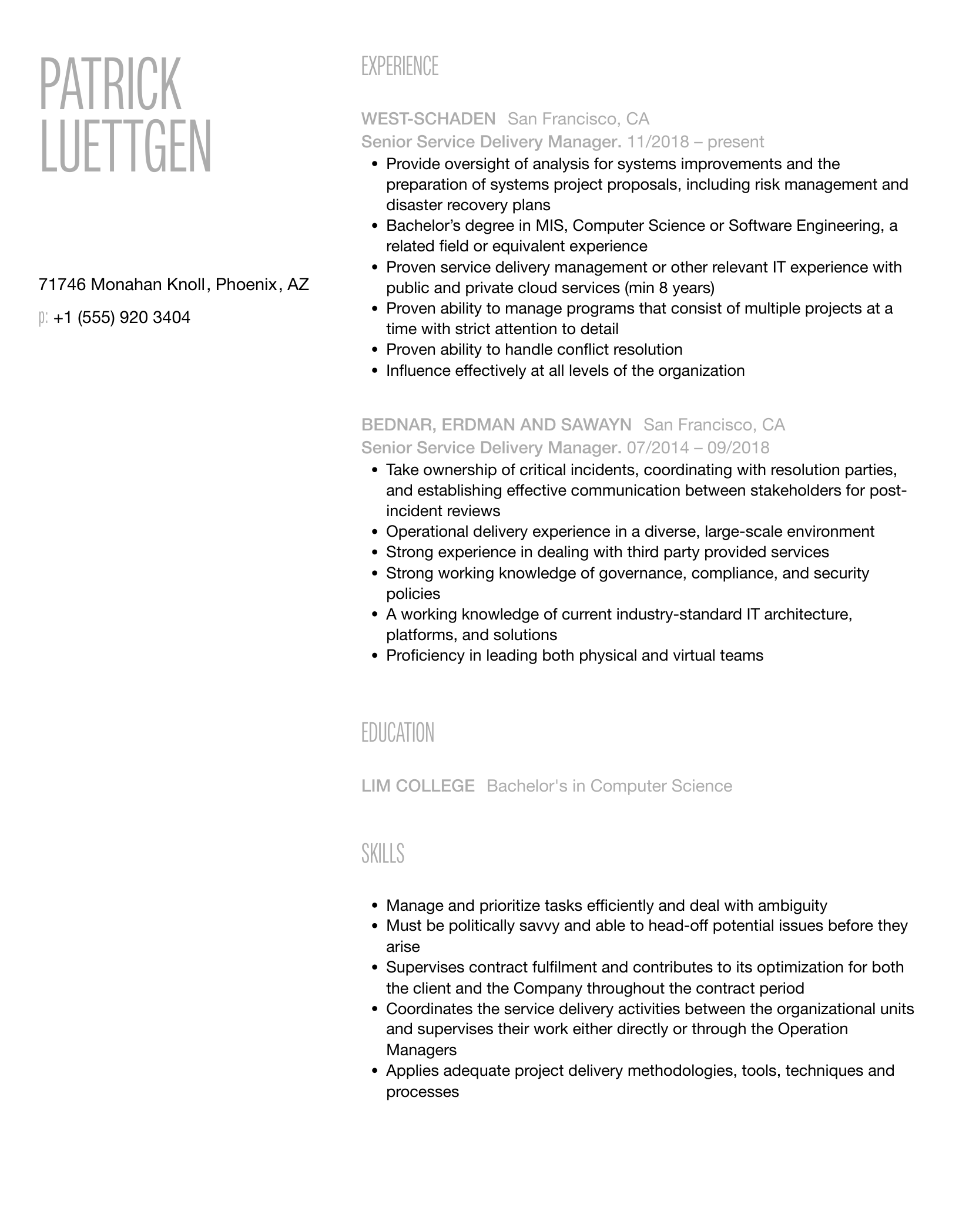 15 Senior Service Delivery Manager resume templates