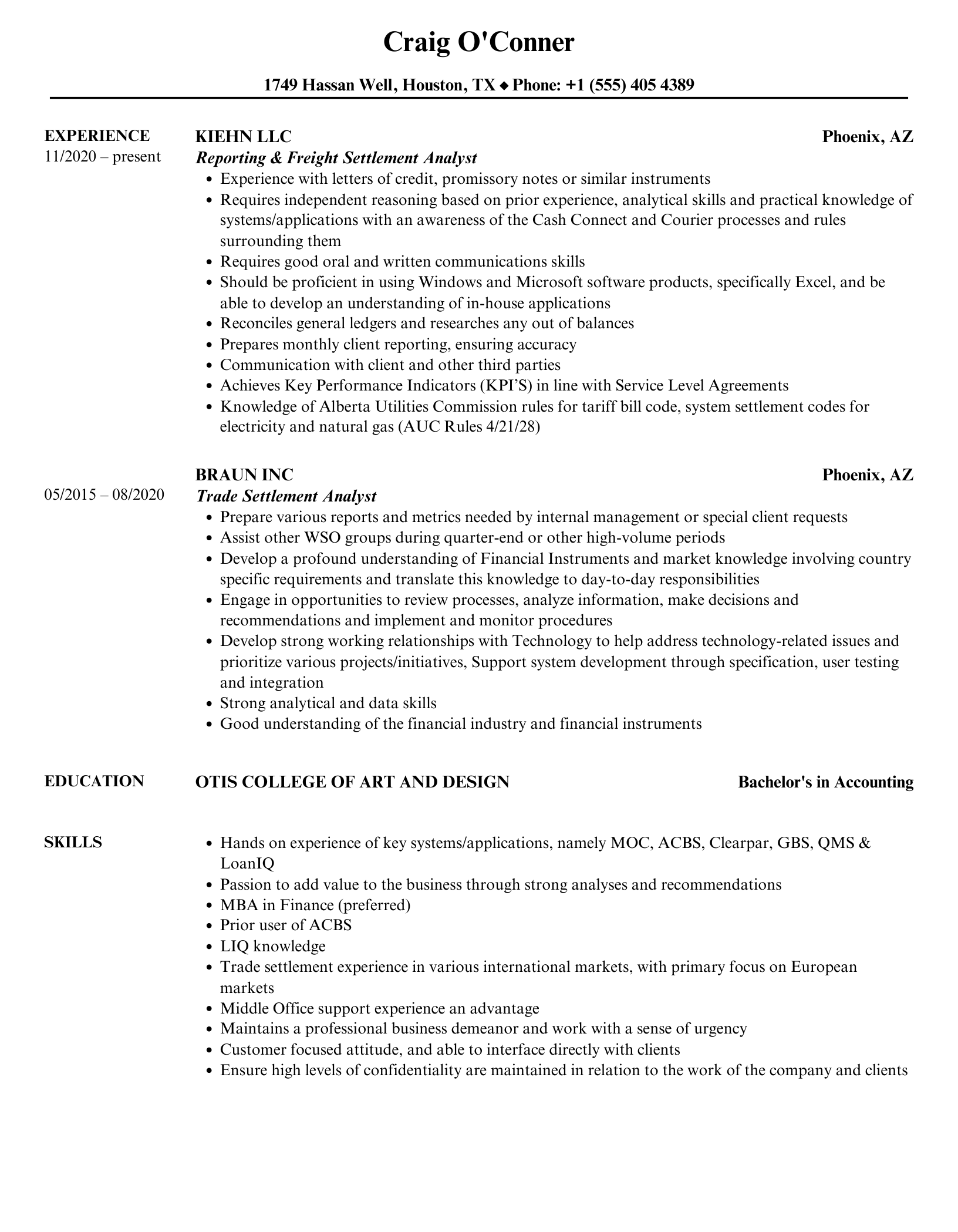 Trade Settlement Analyst Senior Operations Representative Resume Examples & Samples