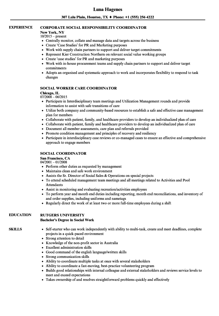 Social Coordinator Resume Samples
