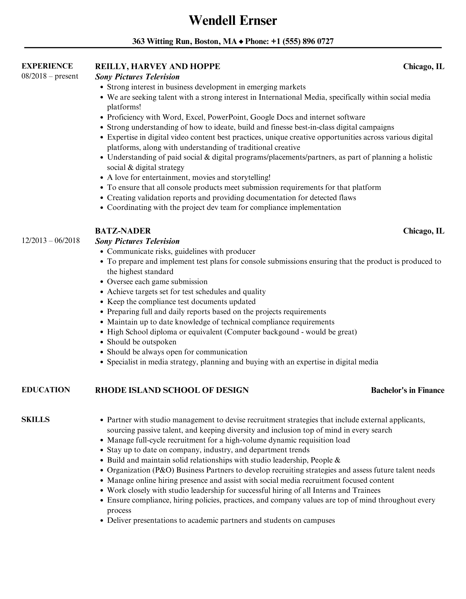 Trainee Research Sony Pictures Television Resume Examples & Samples