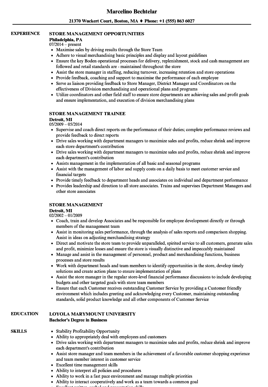 Guide the recruiter to the conclusion that you are the best candidate for the store management job. It’s actually very simple. Tailor your resume by picking relevant responsibilities from the examples below and then add your accomplishments. This way, you can position yourself in the best way to get hired.