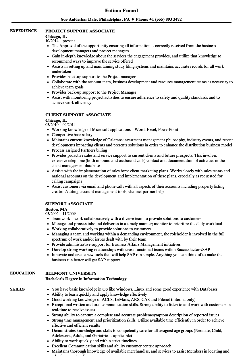 Support Associate Resume Samples