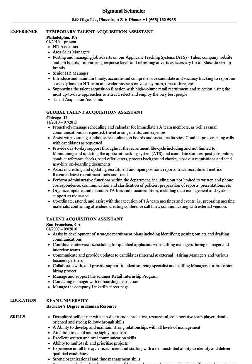 Talent Acquisition Assistant Contract Resume Examples & Samples