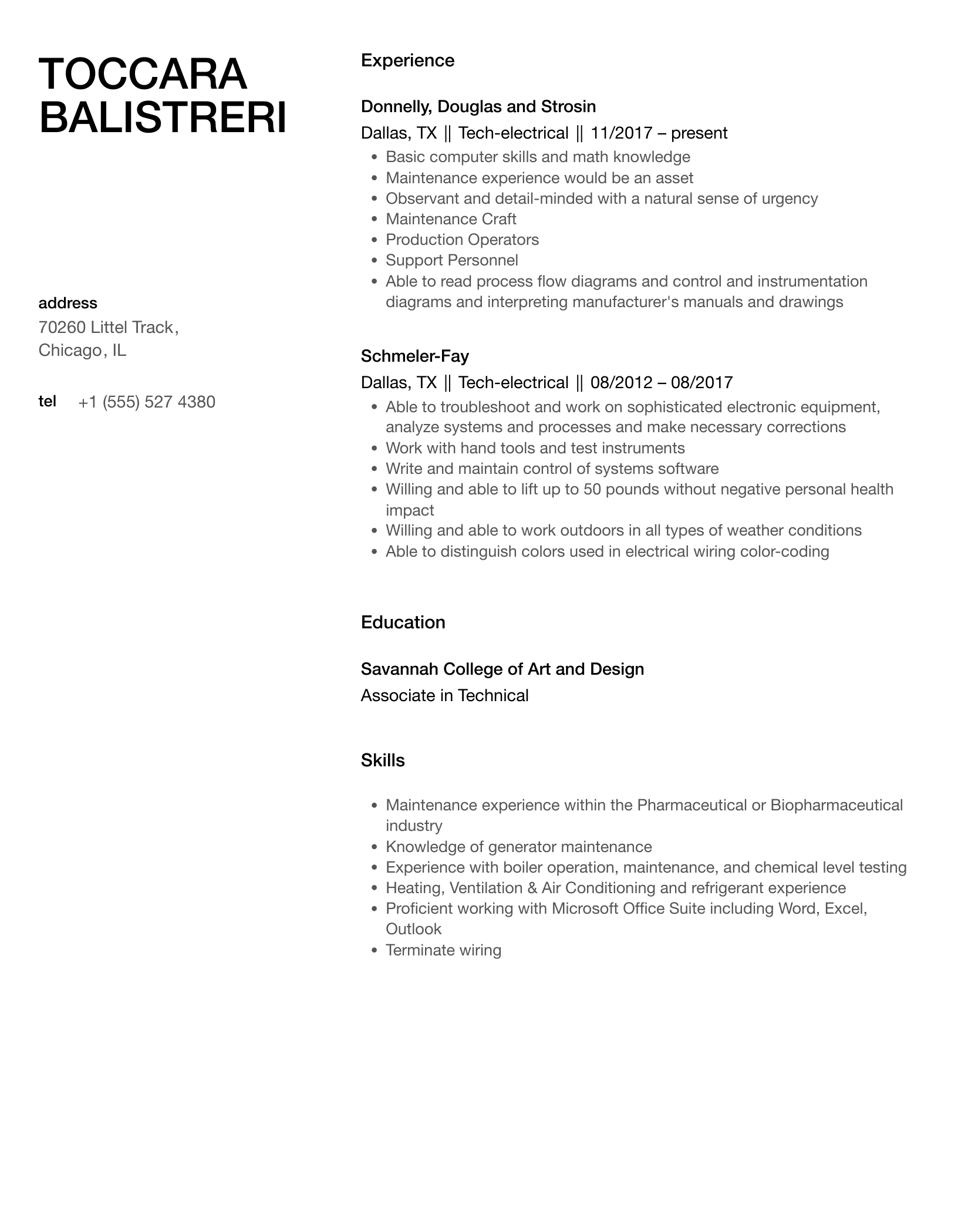 Guide the recruiter to the conclusion that you are the best candidate for the tech-electrical job. It’s actually very simple. Tailor your resume by picking relevant responsibilities from the examples below and then add your accomplishments. This way, you can position yourself in the best way to get hired.