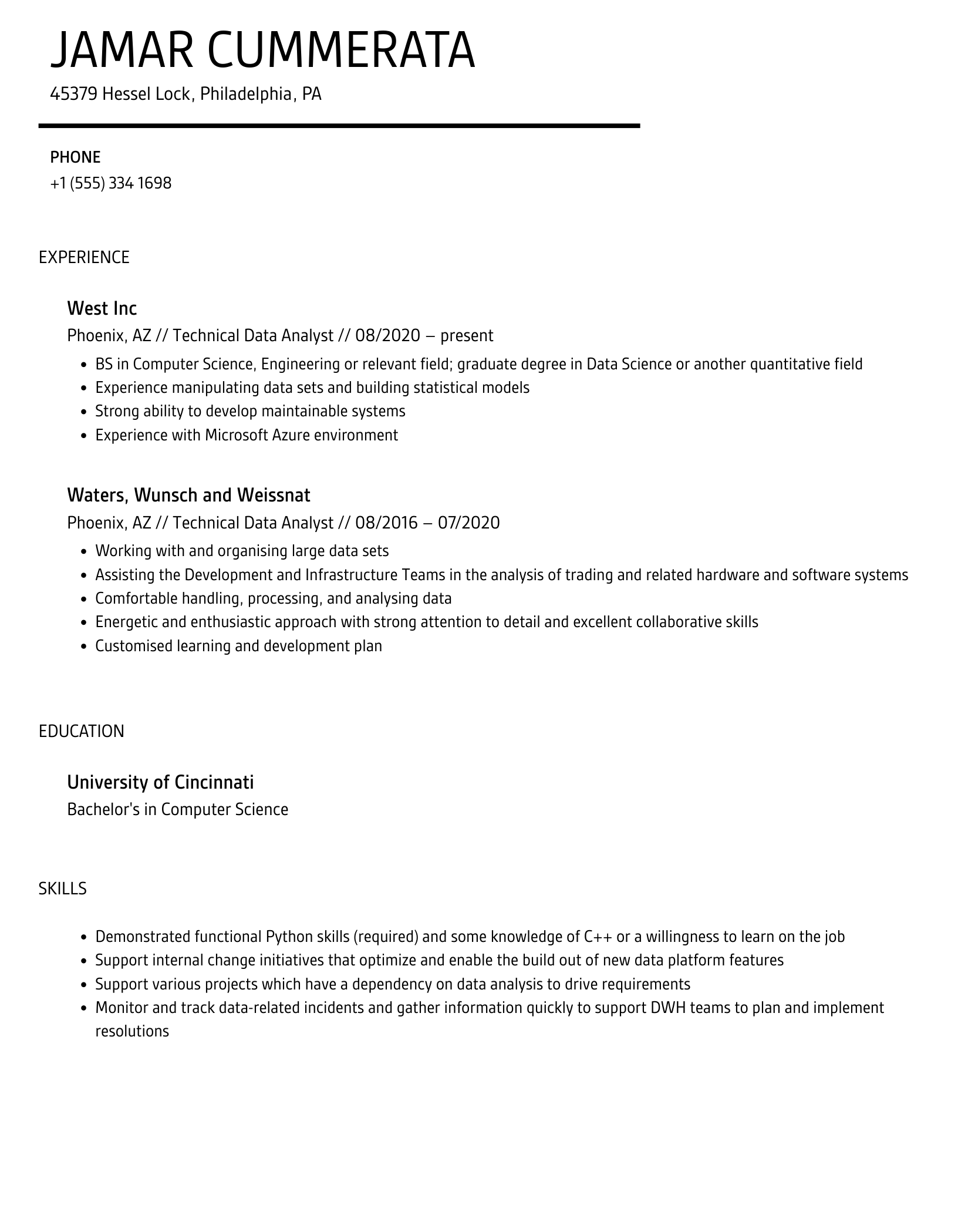 Guide the recruiter to the conclusion that you are the best candidate for the technical data analyst job. It’s actually very simple. Tailor your resume by picking relevant responsibilities from the examples below and then add your accomplishments. This way, you can position yourself in the best way to get hired.