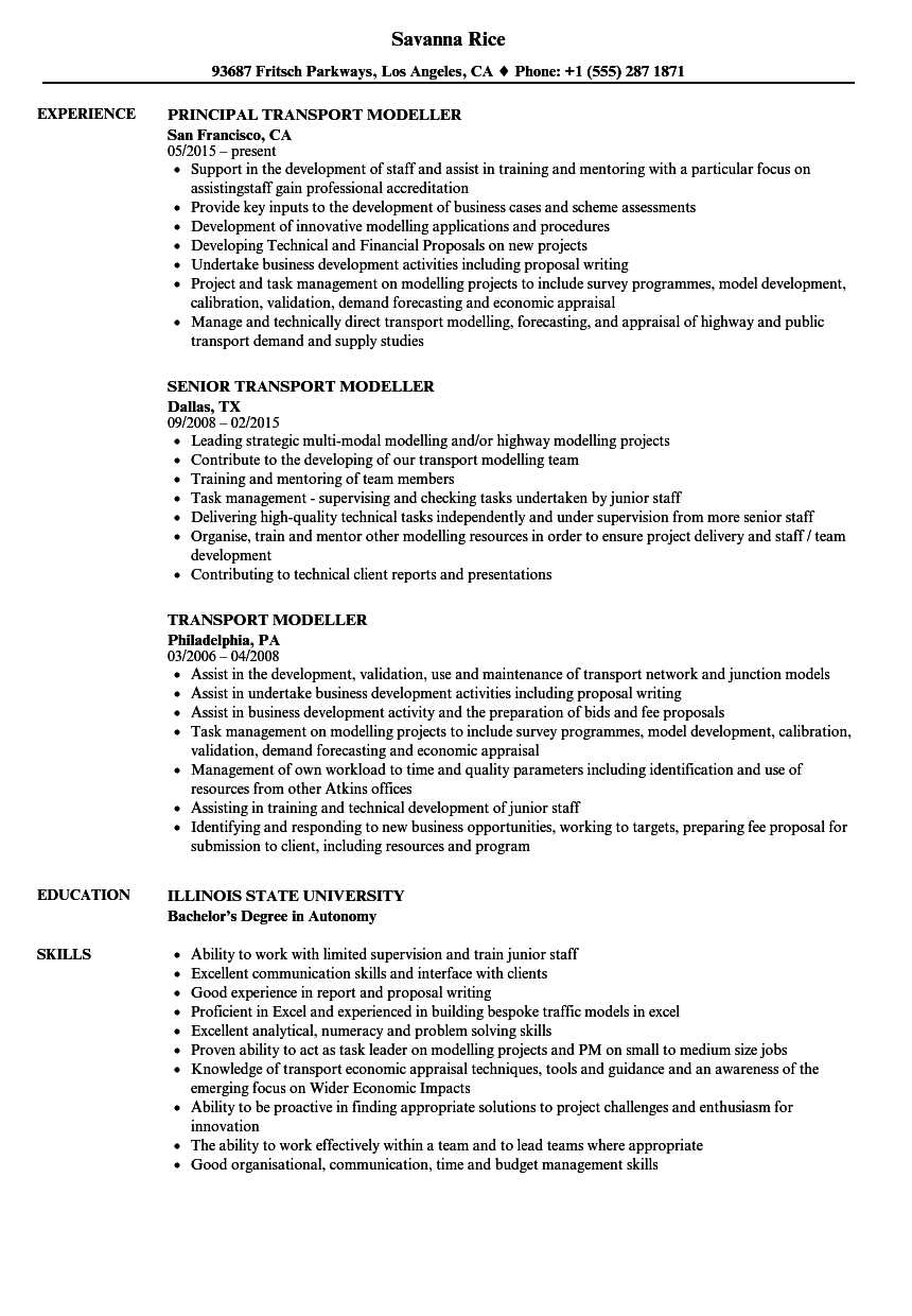 Guide the recruiter to the conclusion that you are the best candidate for the transport modeller job. It’s actually very simple. Tailor your resume by picking relevant responsibilities from the examples below and then add your accomplishments. This way, you can position yourself in the best way to get hired.