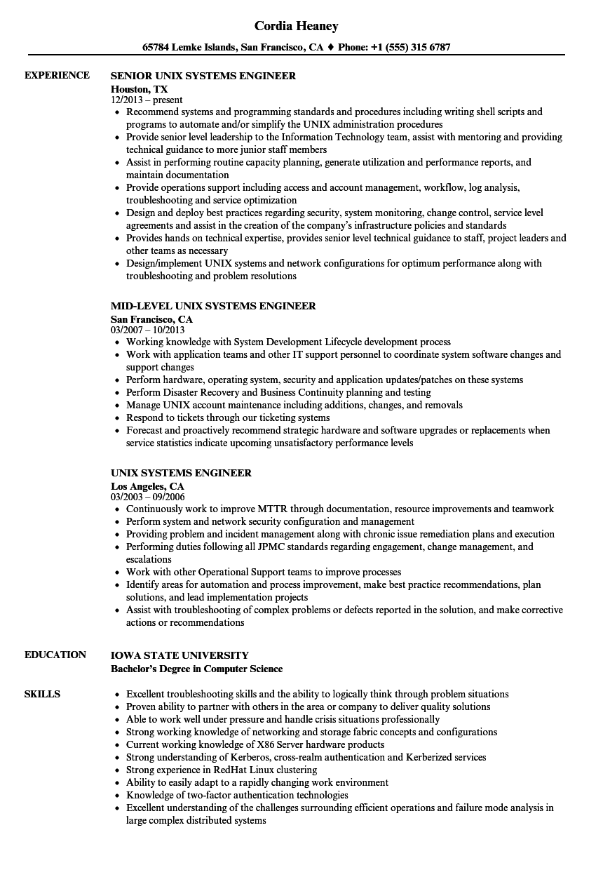 Mid-level Unix Systems Engineer Resume Examples & Samples