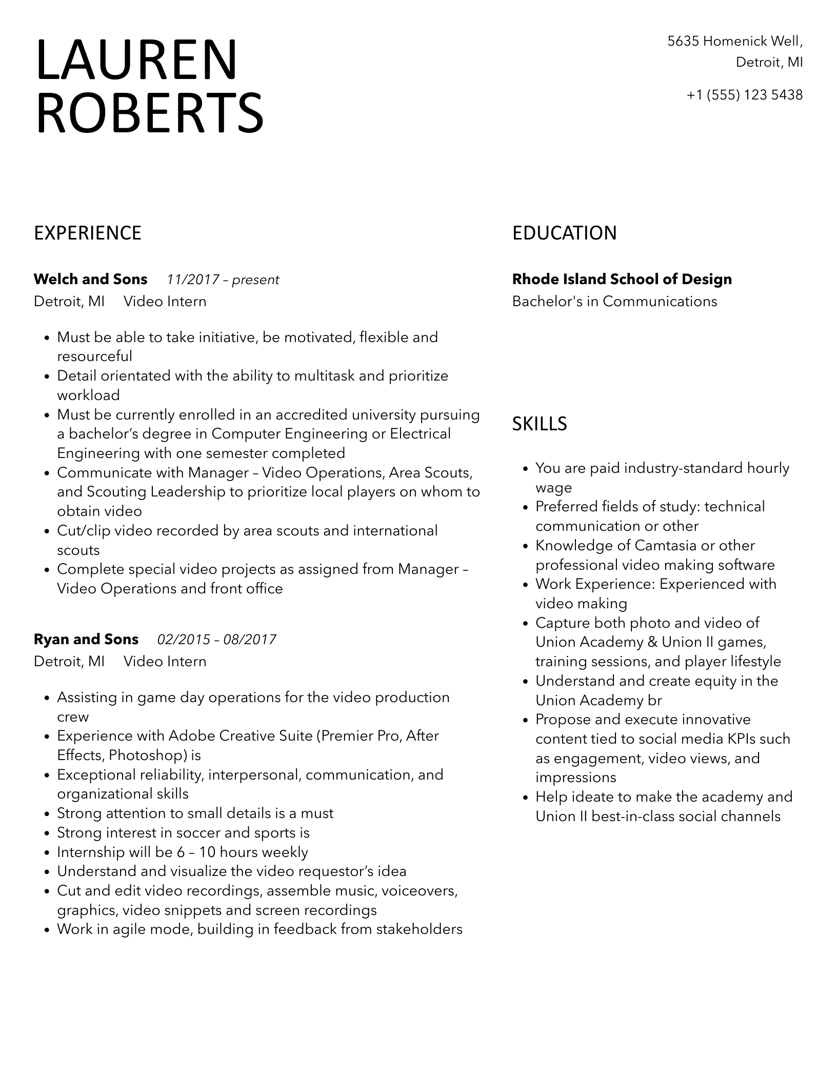 Guide the recruiter to the conclusion that you are the best candidate for the video intern job. It’s actually very simple. Tailor your resume by picking relevant responsibilities from the examples below and then add your accomplishments. This way, you can position yourself in the best way to get hired.