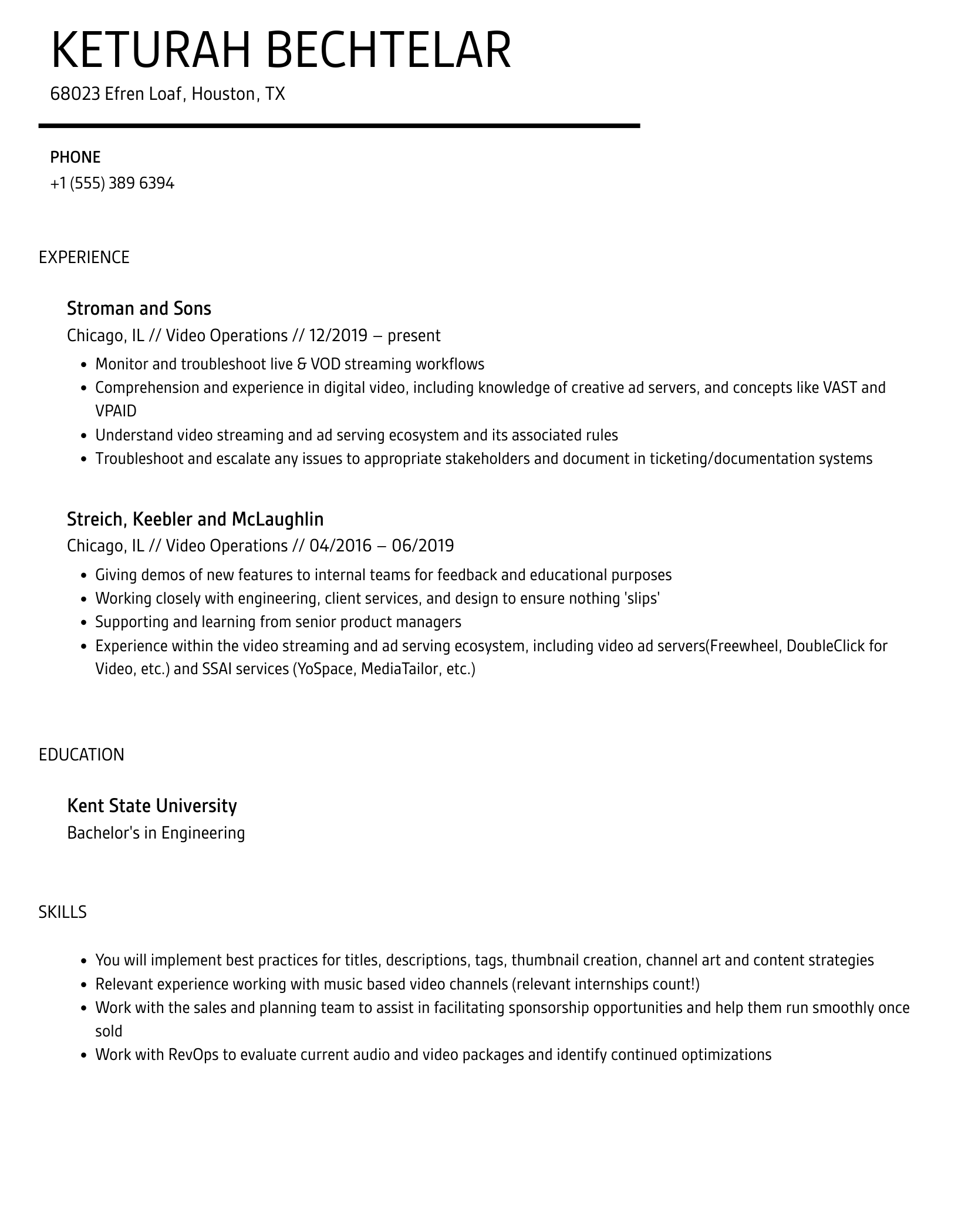 Video Operations Resume Samples