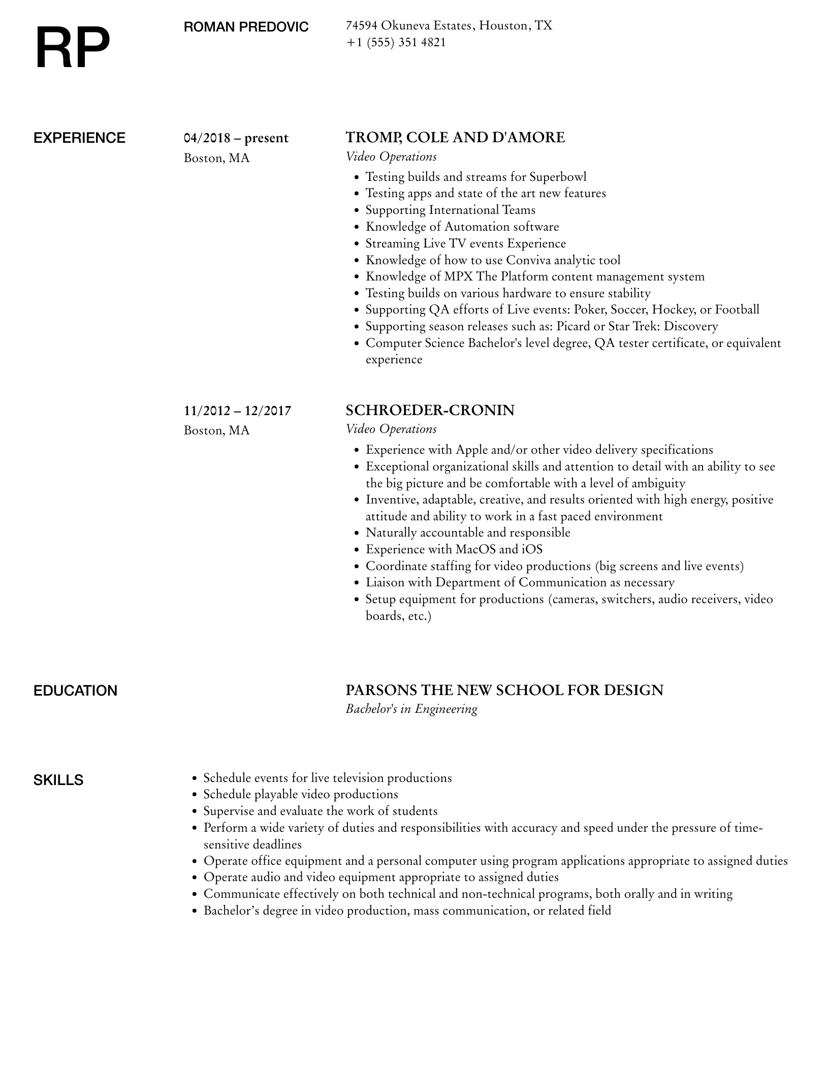 Guide the recruiter to the conclusion that you are the best candidate for the video operations job. It’s actually very simple. Tailor your resume by picking relevant responsibilities from the examples below and then add your accomplishments. This way, you can position yourself in the best way to get hired.