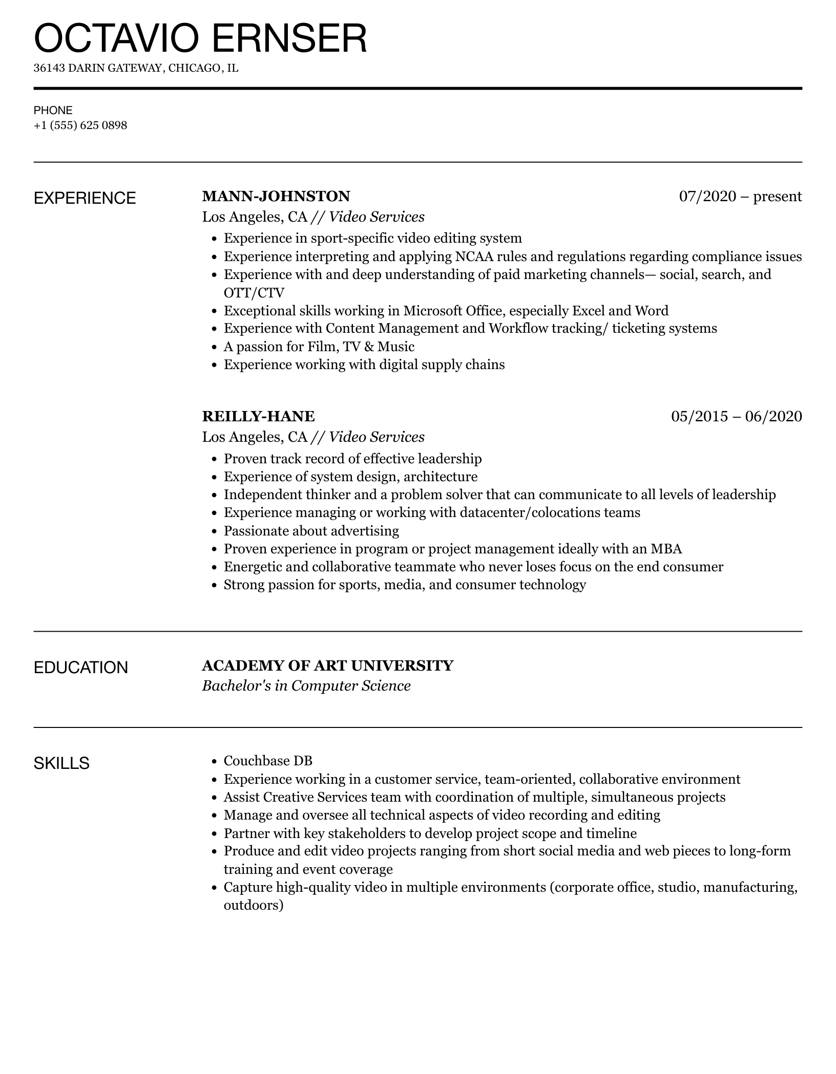 Guide the recruiter to the conclusion that you are the best candidate for the video services job. It’s actually very simple. Tailor your resume by picking relevant responsibilities from the examples below and then add your accomplishments. This way, you can position yourself in the best way to get hired.