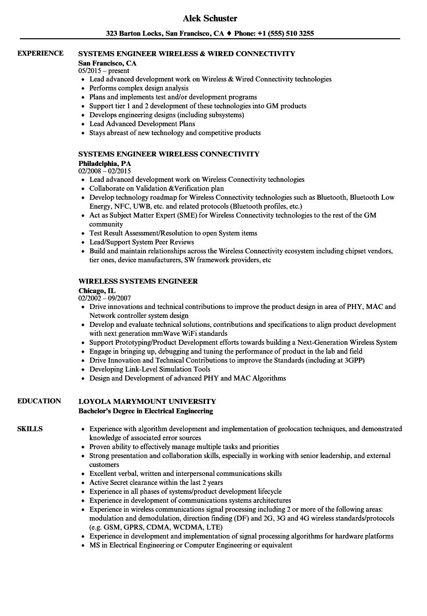 Systems Engineer Wireless Connectivity Resume Examples & Samples